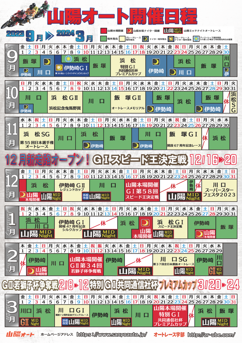 オートレース宇部発売スケジュール更新のお知らせ【オートレース宇部】 2023年09月22日 オートレースの発売スケジュールを更新致しました。 こちらからもご確認頂けます。 http://ar-ube.com/autorace/ 引き続きオートレース宇部を宜しくお願い申し上げます。